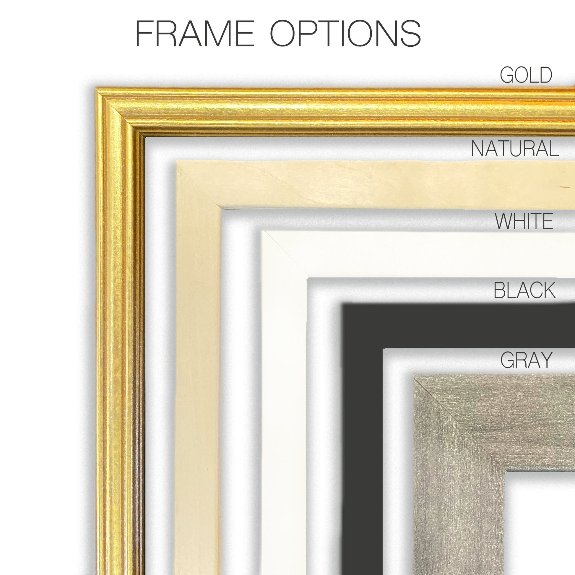 The print is available as is or you can choose to receive it framed in one of five different frame color options: gold, natural, white, gray or black.